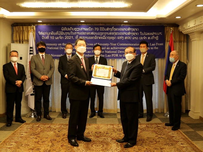 À±¿õ¼· Àϵ¿Á¦¾à ´ëÇ¥´Â ¶ó¿À½º ±¹¹ÎÀÇ º¸°Ç °³¼± ¹× ÁõÁø¿¡ ±â¿©ÇÑ °ø·Î·Î '½ÊÀÚÈÆÀå(Cross of Seventy-Year Commemoration)'À» ¹Þ¾Ò´Ù.