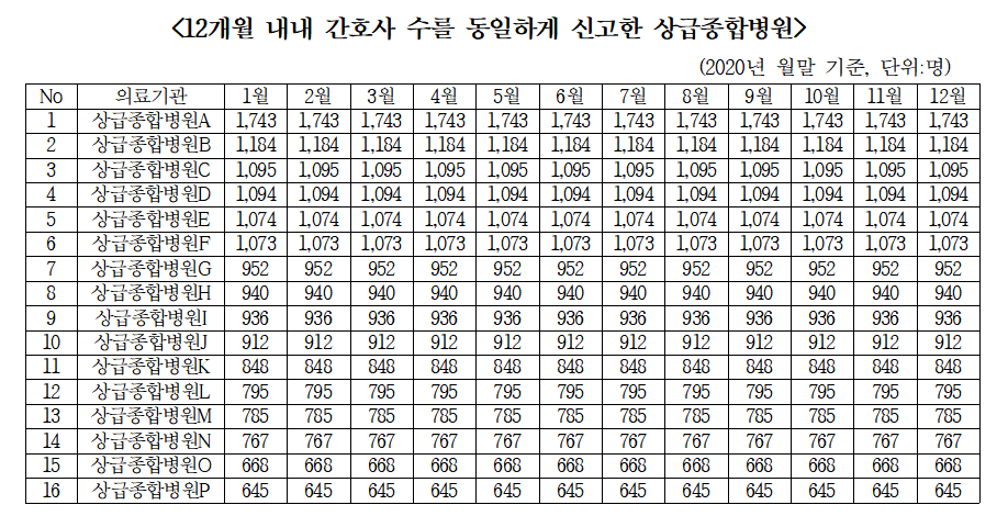 ¶ÇÇÑ 1³â ³»³» °£È£»ç ¼ö°¡ 1¸íµµ ½Å°íµÇÁö ¾ÊÀº º´¿ø±Þ ÀÌ»ó ÀÇ·á±â°üÀÌ 33°³¼Ò¿´°í, ½ÉÁö¾î ÀÏ¹Ý º´µ¿¿¡¼ ±Ù¹«ÇÏ´Â °£È£»ç ¼ö°¡ Àüü °£È£»çº¸´Ù ¸¹°Ô ½Å°íµÈ ÀÇ·á±â°üµµ ¹«·Á 388°÷À¸·Î È®ÀεƴÙ.