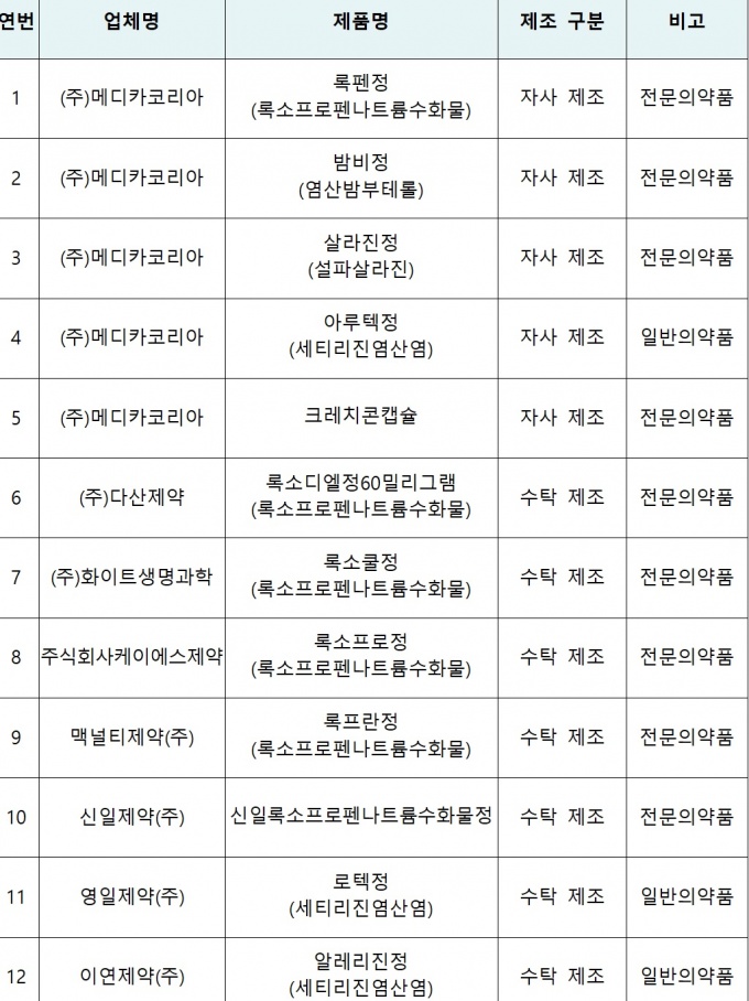 ½ÄǰÀǾàǰ¾ÈÀüó(óÀå ±è°¸³)´Â ¸ÞµðÄ«ÄÚ¸®¾Æ°¡ Á¦Á¶ÇÑ `·ÏÆæÁ¤’ µî 12°³ ǰ¸ñÀ» ȸ¼ö Á¶Ä¡ÇÑ´Ù. 5°³ ǰ¸ñÀº ÀÚ»ç Á¦Ç°, 7°³ ǰ¸ñÀº ¼öŹ Á¦Ç°ÀÌ´Ù.