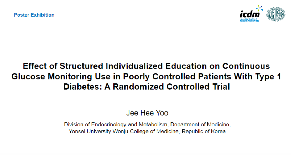 ¿¬¼¼´ëÇб³ ¿øÁÖ Àǰú´ëÇÐ À¯ÁöÈñ ±³¼ö´Â »ï¼º¼¿ïº´¿ø ³»ºÐºñ´ë»ç³»°ú ±èÀçÇö ±³¼ö¿Í ÇÔ²² CGM »ç¿ë¹ý ±³À°ÀÌ ´ç´¢ Ä¡·á¿¡ ¾î¶² È¿°ú°¡ ÀÖ´ÂÁö¸¦ ¿¬±¸ÇÑ ³»¿ëÀ» ¹ßÇ¥Çß´Ù. ¿äÁö´Â "´ç´¢º´ ȯÀÚ¿¡°Ô CGM »ç¿ë¹ýÀÇ Áö¼ÓÀûÀÎ ±³À°ÀÌ Áß¿äÇÏ´Ù"´Â °ÍÀ¸·Î ±Í°áµÈ´Ù.