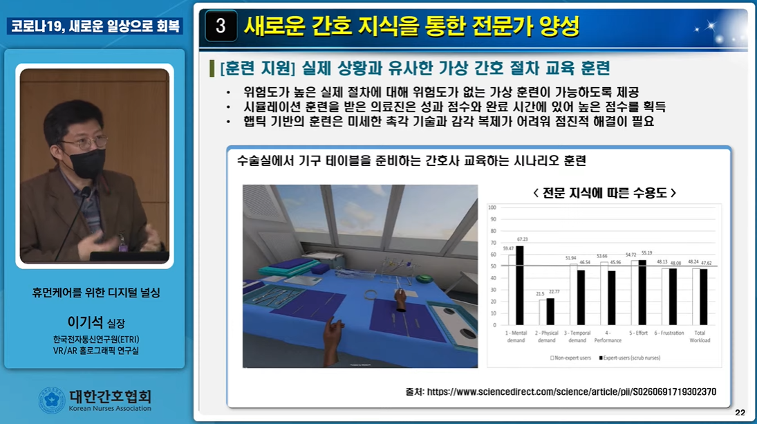 Á¤À¯¹Ì ±¹±º°£È£»ç°üÇб³ ±³¼ö´Â “ºñ´ë¸é ±â¼úÀÌ ÀÏ»óÈµÇ°í µðÁöÅÐ ÀüȯÀÌ °¡¼Óȵʿ¡ µû¶ó ±¹¹Î ´õ °¡±îÀÌ¿¡¼ Àû±ØÀû °£È£¸¦ Á¦°øÇÒ Çʿ䰡 ÀÖ´Ù”¸ç “°£È£¿Í 4Â÷ »ê¾÷Çõ¸í ±â¼ú À¶ÇÕÀº ÇÊ¿äÇÏ´Ù”°í °Á¶Çß´Ù.