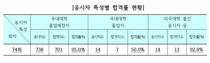 Çѱ¹º¸°ÇÀÇ·áÀα¹°¡½ÃÇè¿øÀº 2022³âµµ Á¦74ȸ Ä¡°úÀÇ»ç ±¹°¡½ÃÇè ½Ç±â½ÃÇè ÇÕ°ÝÀÚ¸¦ 24ÀÏ ¹ßÇ¥Çß´Ù. Á¦74ȸ Ä¡°úÀÇ»ç ±¹°¡½ÃÇè ½Ç±â½ÃÇèÀº Àüü ÀÀ½ÃÀÚ 766¸í °¡¿îµ¥ 721¸íÀÌ ÇÕ°ÝÇß´Ù. ÇÕ°Ý·üÀº 94.1%´Ù.
