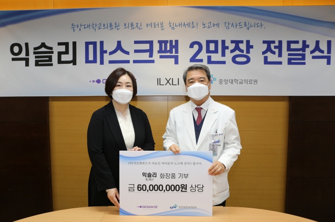 [µ¥Àϸ®¸Þµð ÀÓ¼ö¹Î ±âÀÚ] ÈÀåǰ ¹× °Ç°±â´É½Äǰ ÆÇ¸Å ȸ»çÀÎ Áö¿À¾ØÀ§Áî(´ëÇ¥ÀÌ»ç ÀÌÈ¿Á¤)°¡ Äڷγª19 ÃÖÀü¼±¿¡¼ °í»ýÇϰí ÀÖ´Â ÀÇ·áÁøÀ» À§ÇØ Áß¾Ó´ëÀÇ·á¿ø¿¡ ±â´É¼º ¸¶½ºÅ©ÆÑ 3200¼¼Æ®(ÃÑ 2¸¸2400¸Å)¸¦ ±âÁõÇß´Ù.