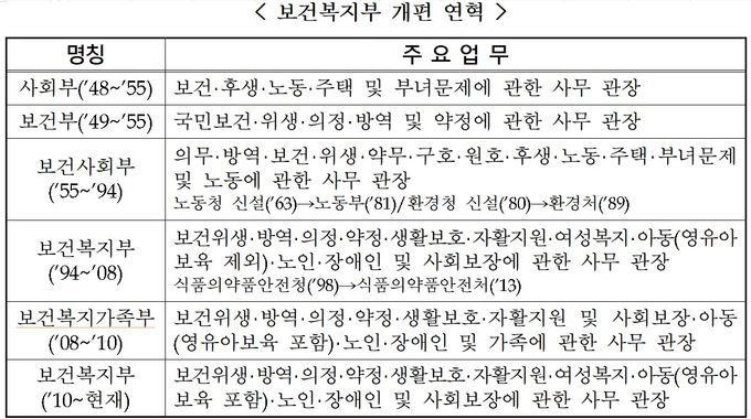 ´ç½Ã º¸°ÇºÎ´Â ¡â±¹¹Îº¸°Ç ¡âÀ§»ý ¡âÀÇ·áÁ¤Ã¥ ¡â¹æ¿ª ¡â¾à¹«Á¤Ã¥ »ç¹«¸¦ °üÀåÇßÁö¸¸ 1955³âºÎÅÍ´Â ¡â³ëµ¿ ¡âÁÖÅà ¡âºÎ³à¹®Á¦¸¦ ´ã´çÇÏ´ø »çȸºÎ¿Í ÅëÇÕµÈ ‘º¸°Ç»çȸºÎ’·Î °³ÆíµÆ´Ù.