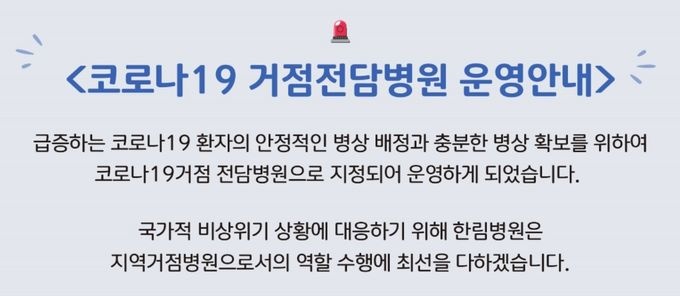 ÇѸ²º´¿øÀº Áö³ ±Ý¿äÀÏ(14ÀÏ) ¿Ü·¡Áø·á¸¦ ³¡À¸·Î Äڷγª19 °ÅÁ¡Àü´ãº´¿ø Àüȯ °ø»ç¸¦ À§ÇØ ÀϹÝȯÀÚ Áø·á ¹× ¼ö¼ú, ÀÔ¿ø µîÀ» ¸ðµÎ Áß´ÜÇß´Ù.