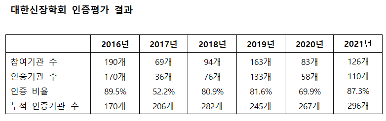 6ÀÏ ´ëÇѽÅÀåÇÐȸ´Â 2016³âºÎÅÍ 2020³â±îÁö 5Â÷¿¡ °ÉÃÄ ½ÃÇàÇÑ Àü±¹ Àΰø½ÅÀå½Ç ÀÎÁõÆò°¡ °á°ú¸¦ °ø°³, ÀÌ °°ÀÌ ÁÖÀåÇß´Ù.