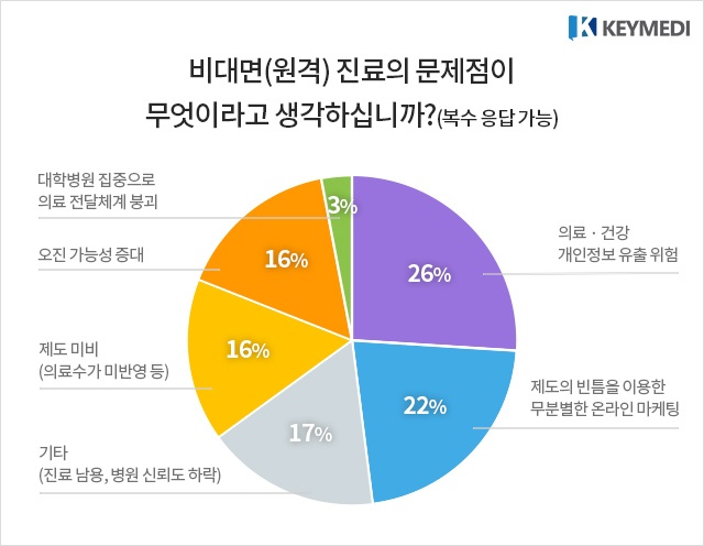 ÀǷᷰǰ °ü·Ã °³ÀÎÁ¤º¸ À¯ÃâÀÌ ¿ì·ÁµÈ´Ù´Â ÀÀ´äÀº 26%¸¦ Â÷ÁöÇÏ¸ç °¡Àå ³ô¾Ò°í, Á¦µµÀÇ ºóÆ´À» ÀÌ¿ëÇÑ ¹«ºÐº°ÇÑ ¿Â¶óÀÎ ¸¶ÄÉÆÃ¿¡ ´ëÇÑ ¿ì·Áµµ 22%·Î Á¶»çµÆ´Ù.