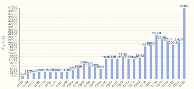 ±¹³» Àüü ½Å±ÔÈ®ÁøÀÚ ¿ª½Ã ÇÏ·ç ¸¸¿¡ ¾à 7¸¸¸íÀÌ Áõ°¡Çϸç 17¸¸1271¸í(23ÀÏ 0½Ã ±âÁØ)ÀÌ ¹ß»ýÇß´Ù.