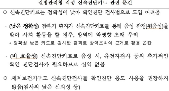 ¶Ç “Á¤È®¼ºÀÌ ³·Àº ŰƮ·Î °Ë»çÇÑ °á°ú´Â ¹æ¿ªÁ¶Ä¡ÀÇ ±Ù°Å·Î Ȱ¿ëÇϱ⠰ï¶õÇÏ´Ù”°í ¸í½ÃÇß´Ù.
