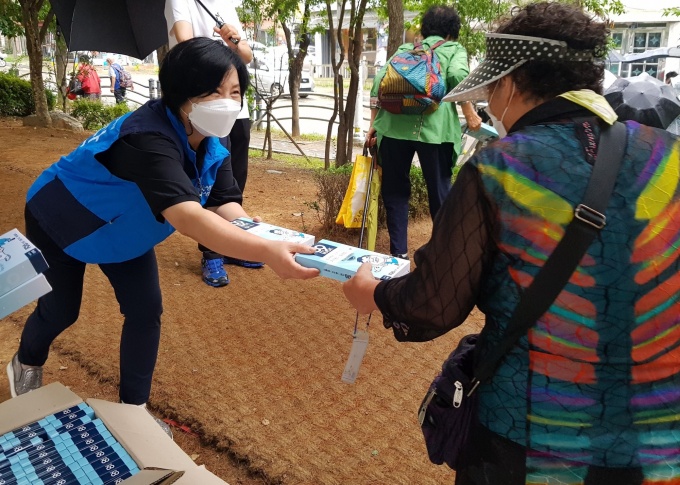 À§»ý¿ëǰ ±¸ÀÔ¿¡ ¾î·Á¿òÀ» °Þ°í ÀÖ´Â ¿©¼º û¼Ò³âµé¿¡°Ô´Â ‘ÀÚ»ý ¿£Á©¹Ú½º ³ª´®»ç¾÷’À» ÅëÇØ ÃÑ 450°³ÀÇ ¹Ú½º¸¦ Àü´ÞÇß´Ù.