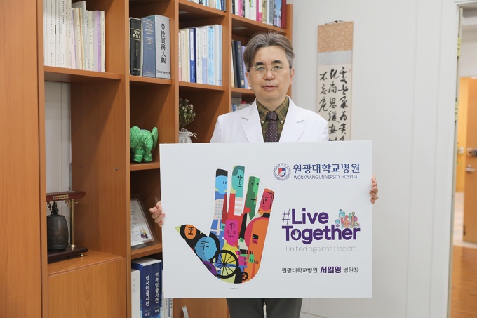 [µ¥Àϸ®¸Þµð ¹é¼ºÁÖ ±âÀÚ] ¿ø±¤´ëÇб³º´¿ø ¼ÀÏ¿µ º´¿øÀåÀÌ ÀÎÁ¾Â÷º° ¹× Çø¿À ¹üÁË¿¡ ¹Ý´ëÇÏ´Â ‘¸®ºê Åõ°Ô´õ(Live together) 縰Áö’¿¡ µ¿ÂüÇß´Ù.