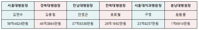 °ø°³ ´ë»óÀÌ µÈ 6°³ ´ëÇк´¿øÀå Áß °¡Àå ¸¹Àº Àç»êÀ» ½Å°íÇÑ º´¿øÀåÀº ±è¿¬¼ö º´¿øÀå(59¾ï4824¸¸¿ø)À̾ú´Ù.
