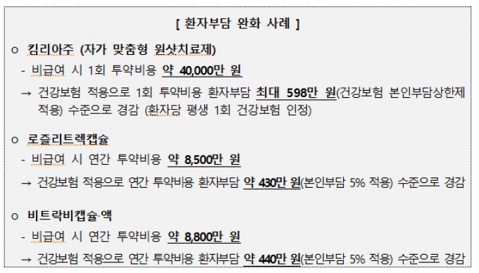 Å´¸®¾ÆÁÖ µî CAR-T¼¼Æ÷ Ä¡·áÁ¦ Åõ¿© °úÁ¤°ú °ü·ÃÇÑ °Çº¸ ¼ö°¡µµ ½Å¼³µÅ ³»´ÞºÎÅÍ ½ÃÇàµÈ´Ù. ÀÌ¿¡ CAR-T ¼¼Æ÷ Ä¡·áÁ¦ Åõ¿© ½Ã ÀÇ·áºñ ºÎ´ãÀº ÇöÀç 200~400¸¸¿ø ¼öÁØ¿¡¼ 10¸¸¿ø ¼öÁØ(±Þ¿©, º»Àκδã 5%)À¸·Î ÁÙ¾îµç´Ù.
