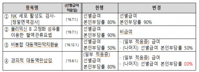 ÀÌ¿¡ NK ¼¼Æ÷ Ȱ¼ºµµ °Ë»ç-[Á¤¹Ð¸é¿ª°Ë»ç]´Â ¼±º°±Þ¿©¸¦ À¯ÁöÇϵÇ, º»Àκδã·üÀ» 80%¸¦ 90%·Î »óÇâÇϰí, ºÒÇÊ¿äÇÑ »ç¿ëÀ» ÃÖ¼ÒÈÇϱâ À§ÇØ ±Þ¿©±âÁØÀ» ¼³Á¤Çϱâ·Î °áÁ¤Çß´Ù.