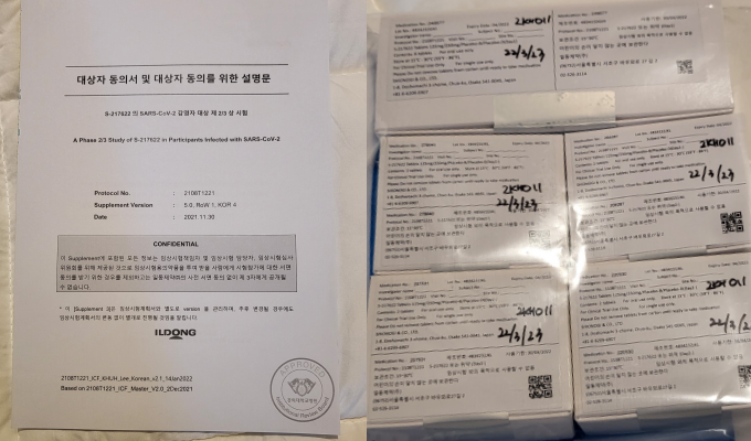»óÀÚ¿¡ ÀûÈù ¾àǰ¸íÀº ‘S-217622 ¶Ç´Â À§¾à’À̾ú´Ù. ÀϹÝÀûÀ¸·Î Ä¡·áÁ¦ ÀÓ»óÀº ‘ÀÌÁ߸Ͱ˹ý’(Double-blind)ÀÌ Àû¿ëµÈ´Ù.