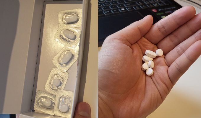 ¸ðµç ¾È³»°¡ ³¡³ µÚ ÀÓ»ó½ÃÇè¿ë ÀǾàǰÀ» Á¦°ø¹Þ¾Ò´Ù. ¾àǰÀº ÃÑ 5°³ Á¾ÀÌ»óÀÚ¿¡ µé¾î ÀÖ¾ú´Ù. Å« Á¾ÀÌ»óÀÚ¿¡´Â ù³¯ º¹¿ëÇØ¾ß ÇÏ´Â 6Á¤, ³ª¸ÓÁö ÀÛÀº Á¾ÀÌ»óÀÚ 4°³¿¡´Â ´ÙÀ½³¯ºÎÅÍ ¸Ô¾î¾ß ÇÒ ¾àÀÌ 2Á¤¾¿ µé¾îÀÖ¾ú´Ù.