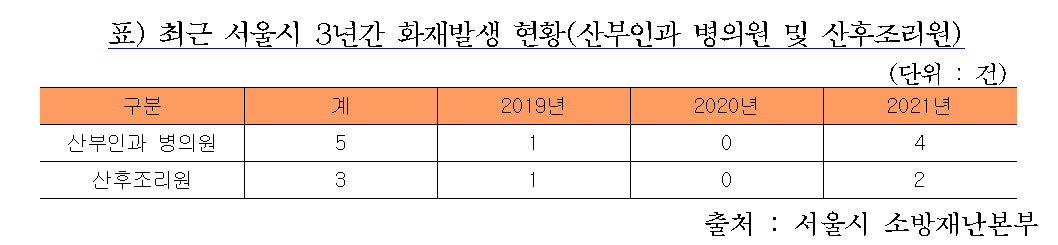 ÃÖ±Ù 3³â°£ ¼¿ï½Ã »êºÎÀΰú º´ÀÇ¿ø ¹× »êÈÄÁ¶¸®¿ø ÈÀç ¹ß»ý ÇöȲÀ» »ìÆìº¸¸é, »êºÎÀΰú º´ÀÇ¿øÀº ¡ã2019³â 1°Ç ¡ã2020³â 0°Ç ¡ã2021³â 4°ÇÀ̾ú´Ù. »êÈÄÁ¶¸®¿øÀº ¡ã2019³â 1°Ç ¡ã2020³â 0°Ç ¡ã2021³â 2°ÇÀÌ´Ù.