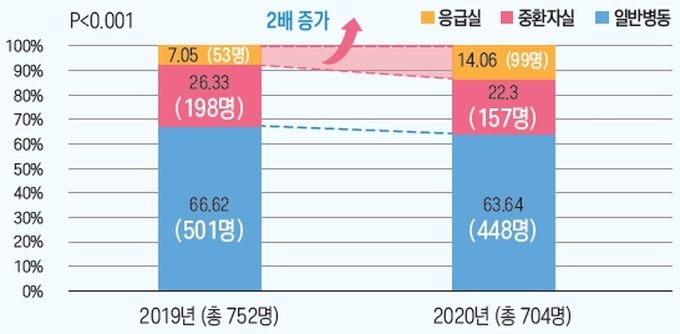 ºÐ¼®°á°ú 2019³âº¸´Ù 2020³â¿¡ ÀÀ±Þ½Ç »ç¸ÁÀÌ 2¹è °¡·® Áõ°¡Çß´Ù. ¶ÇÇÑ ÀÓÁ¾±â ȯÀÚ°¡ °æÇèÇÏ´Â ºÒÆíÇÑ Áõ»ó°ú ¿¬¸íÀÇ·á ½ÃÇà ºñÀ²ÀÌ ³ô°Ô Áõ°¡ÇÑ °ÍÀ¸·Î ³ªÅ¸³µ´Ù.