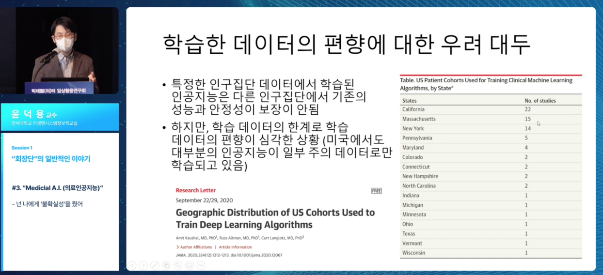 [µ¥Àϸ®¸Þµð ±¸±³À± ±âÀÚ] “ÀÇ·á ÀΰøÁö´É(AI) ¸ðµ¨ ¼ºÆÐ´Â ¾çÁúÀÇ µ¥ÀÌÅÍ¿¡ ´Þ·ÁÀÖ½À´Ï´Ù. ƯÈ÷ ÆíÇâµÈ µ¥ÀÌÅ͸¦ ÇнÀÇÑ ÀΰøÁö´ÉÀº ¿ÀÈ÷·Á ±¹¹Î °Ç° ºÒ±ÕÇüÀ» ÃÊ·¡ÇÒ À§ÇèÀÌ ÀÖ½À´Ï´Ù.” Áö³ 15ÀÏ ºòµ¥ÀÌÅÍÀÓ»óȰ¿ë¿¬±¸È¸°¡ ÁÖÃÖÇÑ ¿Â¶óÀÎ ¼¼¹Ì³ª ‘ºòµ¥ÀÇ(ì¢)ÅͰ¡ ¹Ù¶óº¸´Â 10³â µÚ ÀÇ·áÇöÀå’¿¡¼ À±´ö¿ë ¿¬¼¼´ëÇб³ Àǰú´ëÇÐ ÀÇ»ý¸í½Ã½ºÅÛÁ¤º¸Çб³½Ç ±³¼ö°¡ ÀÌ °°ÀÌ ¸»Çß´Ù. À± ±³¼ö´Â À̳¯ ÀÇ·á ÀΰøÁö´É(AI) ¸ðµ¨ ¹æÇ⼺À» ÃÖ±Ù º¸°ÇÀÇ...