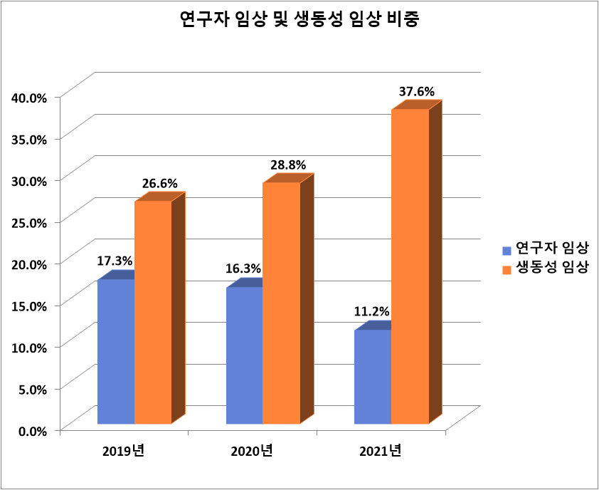[µ¥Àϸ®¸Þµð ½Å¿ë¼ö ±âÀÚ] º´¿ø ³» ¿¬±¸ÁøµéÀÌ ÁÖµµÇÏ´Â ¿¬±¸ÀÚ ÀÓ»ó½ÃÇè ºñÀ²ÀÌ ÃÖ±Ù 3³â°£ °¨¼Ò¼¼¸¦ º¸ÀÎ °ÍÀ¸·Î ³ªÅ¸³µ´Ù. ¹Ý¸é Á¦¾à»çµéÀÇ ¼öÀÍ È®´ë¿Í Á÷°áµÈ »ý¹°ÇÐÀûµ¿µî¼º(ÀÌÇÏ »ýµ¿¼º) ½ÃÇè ºñÁßÀÌ 3³â°£ Å« ÆøÀ¸·Î Áõ°¡ÇÑ °Í°ú´Â »ç¹µ ´ëºñµÇ´Â Ãø¸éÀÌ´Ù. ½ÄǰÀǾàǰ¾ÈÀüó ÀǾàǰ¾ÈÀü³ª¶ó ³» ÀÓ»ó½ÃÇè Á¤º¸¿¡ µû¸£¸é 2021³â ÇÑ ÇØ µ¿¾È ¿¬±¸ÀÚ ÀÓ»ó½ÃÇèÀº ÃÑ 151°ÇÀ¸·Î Àüü ÀÓ»ó½ÃÇè 1350°Ç °¡¿îµ¥ 11.2%¸¦ Â÷ÁöÇß´Ù. ÀÌ´Â ÃÖ±Ù 3³â Áß ÃÖÀú ºñÀ²ÀÌ´Ù. ...