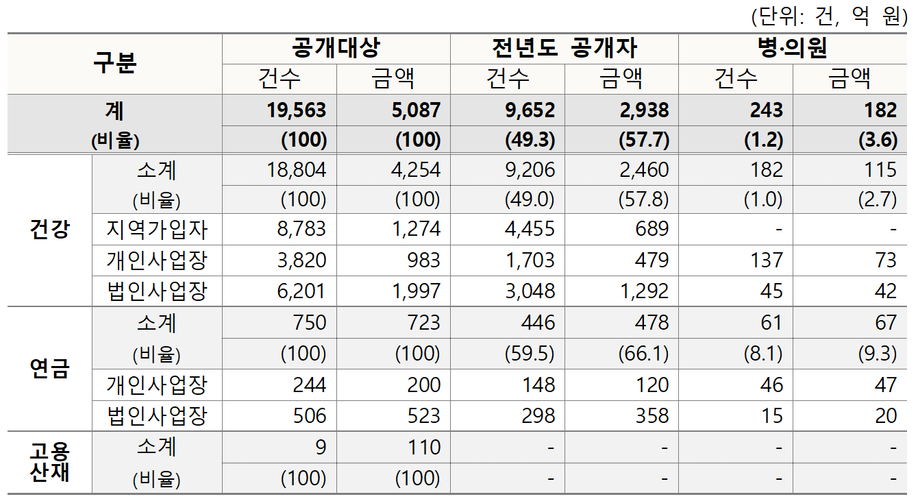 [µ¥Àϸ®¸Þµð ÇÑÇØÁø ±âÀÚ] Áö³ 2020³â 4´ë »çȸº¸Çè·á¸¦ ü³³ÇÑ º´ÀÇ¿ø µî ¿ä¾ç±â°üÀÌ 243°÷¿¡ ´ÞÇÏ´Â °ÍÀ¸·Î ³ªÅ¸³µ´Ù. ±¹¹Î°Ç°º¸Çè°ø´Ü(ÀÌ»çÀå ±è¿ëÀÍ)Àº 4´ë »çȸº¸Çè·á °í¾×·»ó½Àü³³ÀÚ 1¸¸9563¸í(°Ç°º¸Çè 1¸¸8804¸í, ±¹¹Î¿¬±Ý 750¸í, °í¿ë·»êÀ纸Çè 9¸í)ÀÇ ÀÎÀû»çÇ×À» ¿À´Â 28ÀÏ ¿ÀÀü 10½Ã ȨÆäÀÌÁö¸¦ ÅëÇØ °ø°³ÇÑ´Ù°í ¹àÇû´Ù. °í¾×·»ó½Àü³³ÀÚ ÀÎÀû»çÇ× °ø°³´Â ü³³ÀÚÀÇ µµ´öÀû ÇØÀ̸¦ ¸·°í ÀÚÁø³³ºÎ¸¦ À¯µµÇØ º¸ÇèÀçÁ¤ °ÇÀü¼ºÀ» °ÈÇÏ...