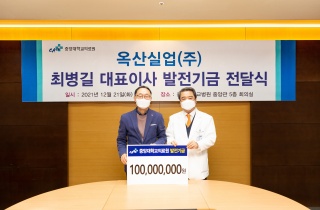 [µ¥Àϸ®¸Þµð ÀÓ¼ö¹Î ±âÀÚ] ÃÖº´±æ ¿Á»ê½Ç¾÷ ´ëÇ¥À̻簡 ³»³â 3¿ù °³¿ø ¿¹Á¤ÀÎ Á߾Ӵ뱤¸íº´¿ø °Ç¸³À» À§ÇØ ½á´Þ¶ó¸ç Áß¾Ó´ëÀÇ·á¿ø¿¡ ¹ßÀü±â±Ý 1¾ï¿øÀ» Àü´ÞÇß´Ù. Áß¾Ó´ëÇб³ÀÇ·á¿ø(ÀÇ·á¿øÀå ȫâ±Ç)Àº 21ÀÏ Á߾Ӵ뺴¿ø ȸÀǽǿ¡¼ ÃÖº´±æ ¿Á»ê½Ç¾÷ ´ëÇ¥¿Í ȫâ±Ç Áß¾Ó´ëÀÇ·á¿øÀåÀ» ºñ·ÔÇØ Á߾Ӵ뺴¿ø °û½Âȯ °ü¸®º»ºÎÀå, ¼ÛÁ¤¼ö ´ë¿ÜÇù·Â½ÇÀå µî ÁÖ¿ä º¸Á÷ÀÚµéÀÌ Âü¼®ÇÑ °¡¿îµ¥ ¹ßÀü±â±Ý Àü´Þ½ÄÀ» °¡Á³´Ù°í 22ÀÏ ¹ßÇ¥Çß´Ù.. ÃÖº´±æ ´ëÇ¥´Â Áß¾Ó´ë Á¤Ä¡¿Ü±³Çаú¸¦ Á¹¾÷...