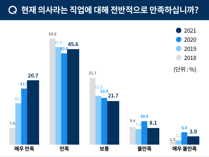 [µ¥Àϸ®¸Þµð ÇÑÇØÁø ±âÀÚ] Äڷγª19ÀÇ Àå±âÈ¿¡µµ ºÒ±¸Çϰí 2021³â ´ëÇѹα¹ ÀÇ»çµéÀÇ Á÷¾÷¸¸Á·µµ´Â Áö³ ÇØ¿¡ ºñÇØ »ó½ÂÇÑ °ÍÀ¸·Î ³ªÅ¸³µ´Ù. ±×·¯³ª ÇâÈÄ ¸¸Á·µµ³ª Àü¸Á¿¡ ´ëÇØ¼´Â ¿©ÀüÈ÷ ºÎÁ¤ÀûÀÎ ÀǰßÀÌ ´õ ¸¹¾ÒÀ¸¸ç, ÀÇ»ç 10¸í Áß 8¸í ÀÌ»óÀº ¾÷¹« ºÎ´ãÀ¸·Î ¹ø¾Æ¿ôÀ» °æÇèÇÑ °ÍÀ¸·Î Á¶»çµÆ´Ù. ÀÇ»ç Àü¿ë Áö½Ä·Á¤º¸ °øÀ¯ ¼ºñ½º ÀÎÅÍ¿¥µð´Â ÃÖ±Ù ‘2021³â ´ëÇѹα¹ ÀÇ»ç Á÷¾÷¸¸Á·µµ Á¶»ç’¸¦ ¹ßÇ¥Çß´Ù. 4³âÂ÷¸¦ ¸Â´Â À̹ø Á¶»ç´Â 2021³â 11¿ù 23ÀÏ...