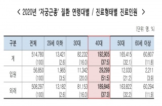 [µ¥Àϸ®¸Þµð ÇÑÇØÁø ±âÀÚ] ÀڱñÙÁ¾ ÁúȯÀº 40´ë ȯÀÚ°¡ °¡Àå ¸¹Àº °ÍÀ¸·Î ³ªÅ¸³µ´Ù. ±¹¹Î°Ç°º¸Çè°ø´Ü(ÀÌ»çÀå ±è¿ëÀÍ)Àº °Ç°º¸Çè Áø·áµ¥ÀÌÅ͸¦ Ȱ¿ëÇØ 2016³âºÎÅÍ 2020³â±îÁö ‘ÀڱñÙÁ¾’ ÁúȯÀÇ °Ç°º¸Çè Áø·áÇöȲÀ» 13ÀÏ °ø°³Çß´Ù. ÀڱñÙÁ¾Àº ÀÚ±ÃÀ» ´ëºÎºÐ ÀÌ·ç°í ÀÖ´Â ÆòȰ±Ù¿¡ »ý±â´Â Á¾¾çÀ̸ç, Àڱà ³»¿¡ ¹ß»ýÇÏ´Â À§Ä¡¿¡ µû¶ó À帷ÇÏ, Á¡¸·ÇÏ, ±ÙÃþ³» ±ÙÁ¾À¸·Î ³ª´¶´Ù. °Çº¸°ø´Ü¿¡ µû¸£¸é Àüü Áø·áȯÀÚ´Â 2016³â 34¸¸3000¸í¿¡¼ 2020³â 51...