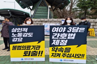 [µ¥Àϸ®¸Þµð ÀÓ¼ö¹Î ±âÀÚ] ´ëÇѰ£È£Çùȸ°¡ ¿¬³» °£È£¹ý Á¦Á¤À» Ã˱¸Çϱâ À§ÇØ 1ÀÎ ½ÃÀ§ ¹× ¸±·¹ÀÌ ½ÃÀ§¿¡ µ¹ÀÔÇß´Ù. ´ëÇѰ£È£Çùȸ(ȸÀå ½Å°æ¸²)´Â Áö³ 10ÀϺÎÅÍ ±¹È¸ ¾Õ°ú Çö´ëijÇÇÅ» ºôµù, ±Ý»êºôµùÀ» ºñ·ÔÇØ ´õºÒ¾î¹ÎÁÖ´ç·±¹¹ÎÀÇÈû ´ç»ç ¾Õ µî 5°÷¿¡¼ ´ëÇüº¸µå¿Í Çö¼ö¸·À» ÀÌ¿ëÇÑ ½ÃÀ§¸¦ ÁøÇàÇß´Ù°í 12ÀÏ ¹àÇû´Ù. ½ÃÀ§´Â ½Ã·µµ °£È£»çȸ ¼Ò¼Ó ȸ¿øµé°ú Áö³ 8ÀÏ ¼ö¿äÁýȸ º¸µµ¸¦ ÅëÇØ °£È£¹ý Á¦Á¤¿¡ Çʿ伺À» Àý°¨ÇÑ ÇöÀå °£È£»çµéÀÌ ÀÚ¹ßÀûÀ¸·Î Âü...