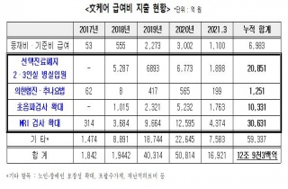 [µ¥Àϸ®¸Þµð ±¸±³À± ±âÀÚ] Á¤ºÎ °Ç°º¸Çè º¸À强 °È Á¤Ã¥À¸·Î ÁöÃâÇÑ ÀçÁ¤ 13Á¶ ¿ø °¡¿îµ¥ Àý¹Ý¿¡ °¡±î¿î 6Á¶ ¿øÀÌ Ãë¾à°èÃþ Áö¿ø°ú ¹«°üÇÏ°Ô »ç¿ëµÆ´Ù´Â ÁöÀûÀÌ ³ª¿Ô´Ù. 15ÀÏ ±¹È¸ º¸°Çº¹ÁöÀ§¿øÈ¸ ¼Á¤¼÷ ÀÇ¿ø(±¹¹ÎÀÇÈû)ÀÌ ±¹¹Î°Ç°º¸Çè°ø´Ü¿¡¼ Á¦Ãâ¹ÞÀº ÀÚ·á¿¡ µû¸£¸é, 2017³âºÎÅÍ 2021³â 3¿ù±îÁö °ø´ÜÀÌ ¹®Äɾ À§ÇØ »ç¿ëÇÑ ÀçÁ¤Àº ¾à 12Á¶9300¾ï¿ø¿¡ ´ÞÇÑ´Ù. ±×·¯³ª ±×Áß Àý¹Ý¿¡ °¡±î¿î 6Á¶3064¾ï¿ø(48%)ÀÌ Ãë¾à°èÃþ°ú ¹«°üÇÑ »ó±Þº´½Ç ÀÔ¿øºñ, Ãß³ª¿ä¹ý, ÃÊÀ½...