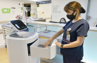 [µ¥Àϸ®¸Þµð ¹Ú´ëÁø ±âÀÚ] H+¾çÁöº´¿ø(º´¿øÀå ±è»óÀÏ)ÀÌ Ã·´Ü ±â¼úÀ» Ȱ¿ëÇÑ ‘¾àÁ¦¹è¼Û ·Îº¿’ À» µµÀÔÇÏ°í º»°ÝÀûÀÎ °¡µ¿¿¡ µé¾î°¬´Ù. ‘¸Þµðº¿(MEDIBOT : Medicine+Robot)’À¸·Î ¾àÁ¦¹è¼Û ·Îº¿Àº ³×Æ®¿öÅ©¿Í ·Îº¿ ±â¼úÀÌ °áÇÕÇØ º´µ¿ ³» Á¤ÇØÁø ¸ñÀûÁö±îÁö ¾ÈÀüÇÏ°Ô ¾àǰÀ» ¿î¹ÝÇÑ´Ù. LiDAR, RGBDÄ«¸Þ¶ó, ÃÊÀ½ÆÄ ¼¾¼ µîÀ» ÀåÂøÇÑ Å° 130cmÀÇ ·Îº¿Àº ÃÊ¼Ó 1m ¼Óµµ·Î À̵¿Çϸç ÃæÀü ¾øÀÌ 5½Ã°£ µ¿¾È °¡µ¿ÇÒ ¼ö ÀÖ´Ù. ÀÏ¹Ý ¾àǰÀ» ¹°·Ð, ¸¶¾à...