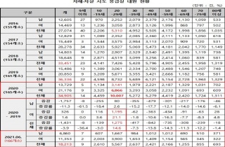 [µ¥Àϸ®¸Þµð °íÀç¿ì ±âÀÚ] ¿ÃÇØ ÀÚÇØ·ÀÚ»ì ½Ãµµ·Î ÀÀ±Þ½Ç¿¡ ³»¿øÇÑ »ç·Ê°¡ ÇÏ·ç Æò±Õ 100°Ç¿¡ ´ÞÇÏ´Â °ÍÀ¸·Î ³ªÅ¸³µ´Ù. ÀÌ´ë·Î¶ó¸é Áö³ÇØ ÀÚÇØ·ÀÚ»ì ½Ãµµ·Î ÀÀ±Þ½ÇÀ» ³»¿øÇÑ ¾à 3¸¸5000°ÇÀ» ³Ñ±æ °ÍÀ̶õ Àü¸ÁÀÌ ³ª¿Â´Ù. 11ÀÏ ±¹È¸ º¸°Çº¹ÁöÀ§¿øÈ¸ ½ÅÇö¿µ ÀÇ¿ø(´õºÒ¾î¹ÎÁÖ´ç)ÀÌ ±¹¸³Áß¾ÓÀÇ·á¿øÀ¸·ÎºÎÅÍ Á¦Ãâ¹ÞÀº ÀÚ·á¿¡ µû¸£¸é Áö³ÇØ ÀÚÇØ·ÀÚ»ì ½Ãµµ·Î ÀÎÇÑ ÀÀ±Þ½Ç ³»¿øÀº 3¸¸4905°ÇÀ̾ú´Ù. Àü³â ´ëºñ 1431°Ç(3.9%) °¨¼ÒÇßÁö¸¸, 20´ë¿¡¼´Â 1275°Ç...