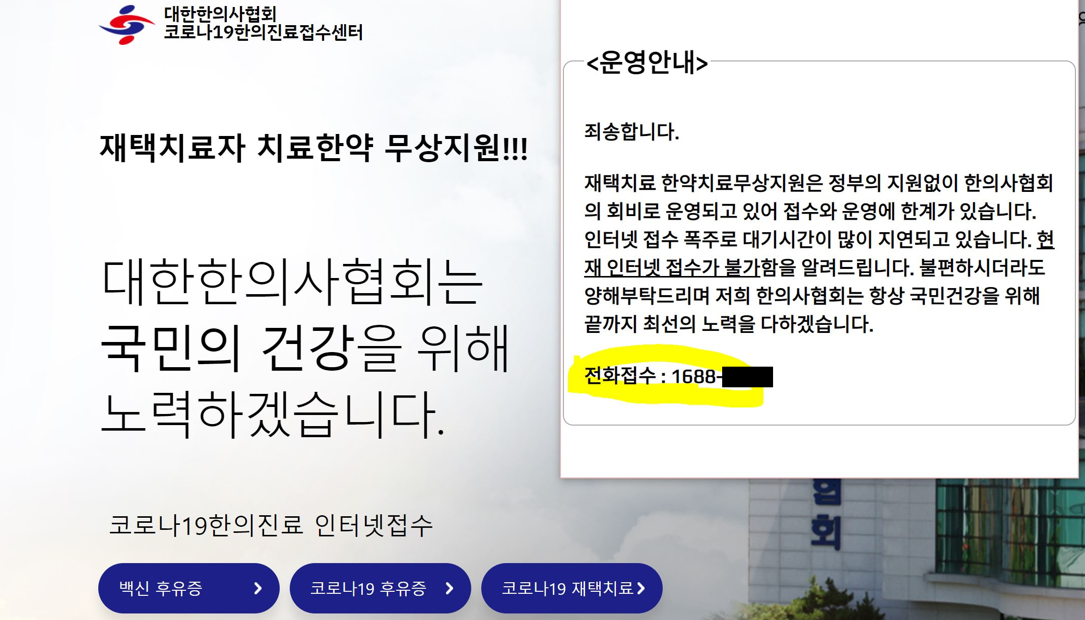 [µ¥Àϸ®¸Þµð ¹ÚÀú¿¬ ±âÀÚ] ´ëÇÑÇÑÀÇ»çÇùȸ(ÇÑÀÇÇù)°¡ ¿î¿µÇÏ´Â ‘Äڷγª19 Ä¡·áÇÑ¾à ¹«»óÁö¿ø »ç¾÷’ÀÌ ¹Ð·Áµå´Â ½ÅûÀÚ·Î »ç½Ç»ó ¸¶ºñ»óÅ¿¡ À̸£·¶´Ù. ±×µ¿¾È ÇÑÀÇÇùÀº ÀÚü ȸºñ·Î ¿î¿µºñ¸¦ Ãæ´çÇØ¿ÔÁö¸¸ ÃÖ±Ù À̸¶Àúµµ ¿©ÀÇÄ¡ ¾Ê¾ÆÁ³´Ù. ÀÌ¿¡ ÀϺΠȸ¿øµéÀÌ ÀÚ¹ßÀûÀ¸·Î ¹«»óºÀ»ç¿¡ ³ª¼¹Áö¸¸ ȯÀÚ ¼ö¿ä¸¦ ¼ÒÈÇϱ⿣ ¿ªºÎÁ·ÀÎ »óȲÀÌ´Ù. 24ÀÏ ÇÑÀÇÇù¿¡ µû¸£¸é ÃÖ±Ù Çùȸ´Â ‘ÀçÅÃÄ¡·á ÇѾàÄ¡·á ¹«»óÁö¿ø’ ÀÎÅÍ³Ý Á¢¼ö¸¦ Áß´ÜÇϰí ÀüÈ Á¢¼ö¸¸...