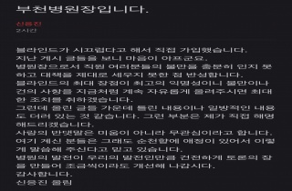 [µ¥Àϸ®¸Þµð ½Å¿ë¼ö ±âÀÚ] ½ÅÀÀÁø ¼øÃµÇâ´ëºÎõº´¿ø ¿øÀåÀÌ Áö³ 1¿ù ¿¬ÀÓ ÀÌÈÄ ÆÄ°ÝÀûÀÎ ¼ÒÅë Çຸ¸¦ º¸¿© ±× ¹è°æ¿¡ °ü½É. ´ÜÀûÀÎ ¿¹·Î ÀÍ¸í ±â¹Ý Á÷ÀåÀÎ Ä¿¹Â´ÏƼ ¾îÇø®ÄÉÀ̼Ç(¾Û) ºí¶óÀε忡 Á÷Á¢ ±ÛÀ» ¿Ã·Á Á÷¿øµé°ú ¼ÒÅëÀ» À§ÇÑ »õ·Î¿î ¹®(Ú¦)À» ¿¬ °Í. ÃÖ±Ù ºí¶óÀε忡 ‘ºÎõº´¿øÀåÀÔ´Ï´Ù’¶ó´Â Á¦¸ñÀÇ ±ÛÀÌ ¿Ã¶ó¿Í ÈÁ¦. ÀÌ ±ÛÀÇ ÀÛ¼ºÀÚ´Â ¼øÃµÇâ´ëºÎõº´¿øÀåÀÎ ‘½ÅÀÀÁø’À̶ó´Â ½Ç¸í ´Ð³×ÀÓÀ» »ç¿ë. ÀÛ¼ºÀÚ´Â ±ÛÀ» ÅëÇØ “ºí¶óÀεå...