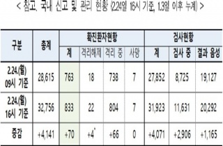 [µ¥Àϸ®¸Þµð °íÀç¿ì ±âÀÚ] Äڷγª19 È®ÁøÀÚ°¡ 70¸í Ãß°¡·Î ¹ß»ýÇß´Ù. ÀÌ¿¡ µû¶ó ÃÑ È®ÁøÀÚ ¼ö´Â 833¸í¿¡ ´ÞÇß´Ù. Áúº´°ü¸®º».2020-02-24 17:26:02