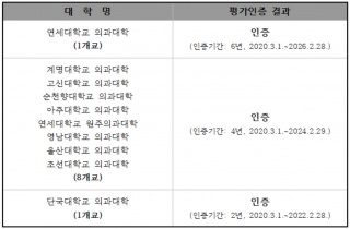 [µ¥Àϸ®¸Þµð ¹Ú¼ºÀº ±âÀÚ] 2019³âµµ ÀÇÇб³À° Æò°¡ÀÎÁõ °á°ú°¡ °ø°³µÆ´Ù. Áö³ÇØ Æò°¡ ´ë»óÀº 10°³ ´ëÇÐÀ¸·Î, ÀÌµé ¸ðµÎ ¹«³È÷2020-01-05 17:23:46