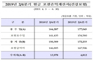 [µ¥Àϸ®¸Þµð ¹Ú±Ùºó ±âÀÚ] ÀûÀÚ ´Ë¿¡ ºüÁ³´ø °Ç°º¸Çè ÀçÁ¤ÀÌ ¿À·£¸¸¿¡ ÈæÀÚ¸¦ ±â·ÏÇß´Ù. 2ºÐ±â ÀçÁ¤Àº 4812¾ï¿ø ÈæÀÚ·Î ÀüȯµÆ.2019-09-30 12:32:11
