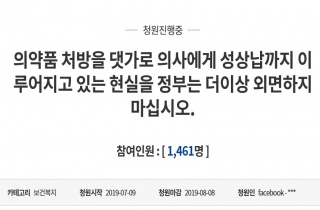 [µ¥Àϸ®¸Þµð ¾çº¸Çý ±âÀÚ] Á¤ºÎ¿¡ ÀǾàǰ ¼ººÐ¸í ó¹æÀ» ¿ä±¸Çϴ û¿øÀÌ ¿Ã¶ó¿Í ´«±æÀ» ²ö´Ù. ¾à»çµéÀÌ °øº¸Àǰ¡ ÀǾàǰ ó¹æ2019-07-12 17:30:00