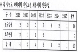 ¾à´ë ½Å¼³ µµÀü ÇѸ²´ë "2025³â±îÁö ÀüÀÓ±³¿ø 23¸í"
