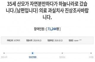 [µ¥Àϸ®¸Þµð ¹Ú´Ù¿µ ±âÀÚ] ÀÚ¿¬ºÐ¸¸ ÈÄ ´ÙÀ½³¯ ¼ûÁø 30´ë ¿©¼ºÀÇ »ç¿¬ÀÌ Ã»¿Í´ë ±¹¹Îû¿ø¿¡¼ 7¸¸¸íÀÌ ³Ñ´Â ±¹ ¹ÎÀÇ µ¿ÀǸ¦ ¹Þ.2018-10-02 12:58:50