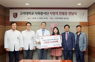 [µ¥Àϸ®¸Þµð ±èÁø¼ö ±âÀÚ] °í·Á´ëÇб³ÀÇ·á¿ø(ÀÇ·á¿øÀå À̱âÇü)Àº ÃÖ±Ù °í·Á´ëÇб³ »çȸºÀ»ç´ÜÀ¸·ÎºÎÅÍ ÇåÇ÷Áõ 3000¸Å¸¦ Àü´Þ¹Þ.2018-07-18 10:46:34