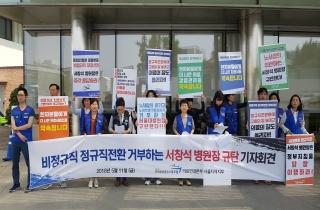 ¹ÎÁÖ³ëÃÑÀü±¹°ø°ø¿î¼ö³ëµ¿Á¶ÇÕÀÌ ¼¿ï´ëÇб³º´¿ø ¼Ã¢¼® ¿øÀå ÅðÁøÀ» ¿ä±¸ÇÏ´Â µî ±ÔźÀÇ ¸ñ¼Ò¸®¸¦ ³Â´Ù. ¹ÎÁÖ³ëÃÑÀü±¹°ø°ø.2018-05-11 12:53:17