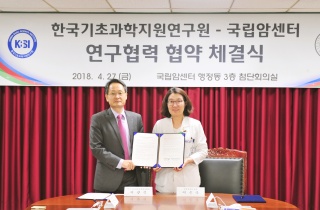±¹¸³¾Ï¼¾ÅÍ(¿øÀå ÀÌÀº¼÷)¿Í Çѱ¹±âÃʰúÇÐÁö¿ø¿¬±¸¿ø(¿øÀå À̱¤½Ä, KBSI)Àº 27ÀÏ ±¹¸³¾Ï¼¾ÅÍ ÇàÁ¤µ¿ ÷´ÜȸÀǽǿ¡¼ ¾Ï ´Ü¹éÀ¯Àü2018-04-27 17:48:11