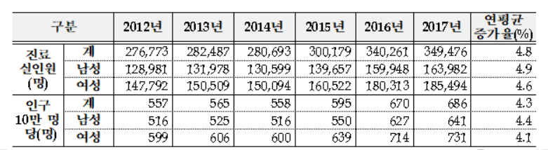 ±¹³» ³Ã» Áúȯ Áø·áȯÀÚ ±Ô¸ð°¡ Áö³ 2012³â 27¸¸7000¸í¿¡¼ 2017³â 34¸¸9000¸íÀ¸·Î ¿¬Æò±Õ 4.8%¾¿ Áõ°¡ÇÑ °ÍÀ¸·Î ³ªÅ¸³µ´Ù. 2018-04-18 15:00:00