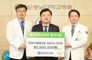 Ãæ³²´ëÇб³º´¿ø(¿øÀå ¼Û¹ÎÈ£)Àº 19ÀÏ (ÁÖ)¾ÆÀÌÁöÁ¾ÇհǼ³ ¹ÚÀα¹ ´ëÇ¥ÀÌ»ç·ÎºÎÅÍ º´¿ø ¹ßÀü±â±Ý 5000¸¸¿øÀ» ±âºÎ ¹Þ¾Ò´Ù°í ¹àÇû2018-02-19 17:50:41