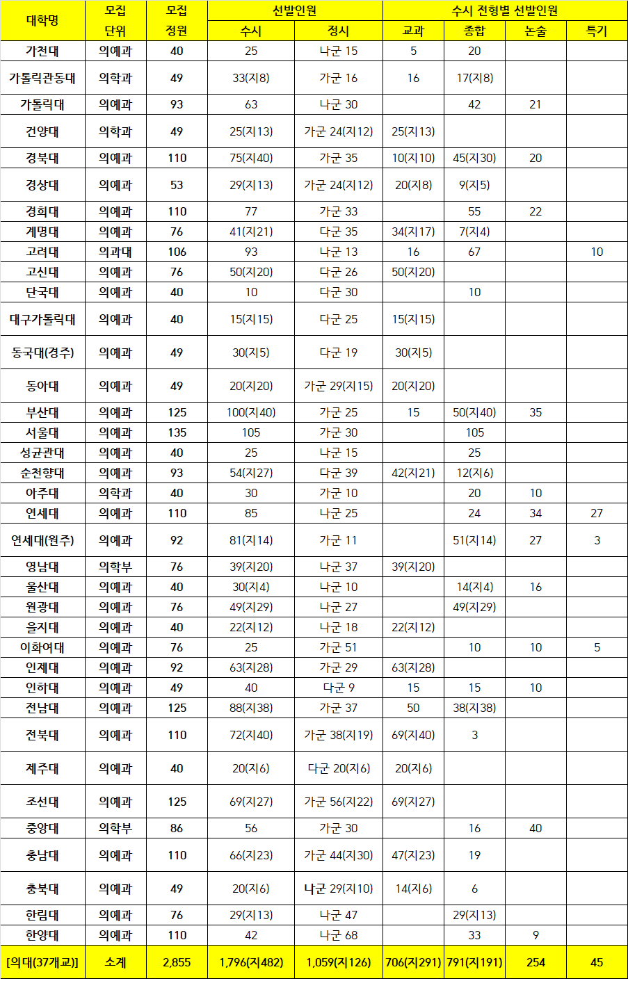 2019Çг⵵ Àü±¹ Àǰú´ëÇÐ 37°³±³ ¸ðÁý Á¤¿øÀÌ 2855¸íÀ¸·Î, Àü³âµµ 36°³±³ 2533¸í ´ëºñ 12.7%p(322¸í) Áõ°¡ÇÑ´Ù. Á¾·ÎÇпøÇÏ´Ã2018-01-18 11:48:20