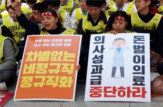 ¼¿ï´ëº´¿ø ³ëµ¿ÀÚµéÀÌ 8ÀÏ ÆÄ¾÷¿¡ µ¹ÀÔÇÑ °¡¿îµ¥ ¼Ã¢¼® º´¿øÀå ÆÄ¸éÀ» ¿ä±¸ÇÏ´Â ¸ñ¼Ò¸®°¡ ³ô¾ÆÁö°í ÀÖ´Ù. °ø°ø¿î¼ö³ëÁ¶ ÀÇ·á2017-12-08 15:38:10