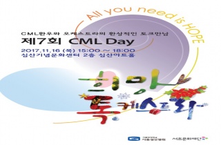 ¸¸¼º°ñ¼ö¼º¹éÇ÷º´(CML) ȯÀڵ鿡°Ô Ä¡·á Á߿伺°ú ¿ÏÄ¡ Èñ¸ÁÀ» ÁÖ±â À§ÇÑ ‘CML Day’ °¡ 11¿ù 16ÀÏ ¿ÀÈÄ 3½ÃºÎÅÍ ¼.2017-11-10 12:38:00