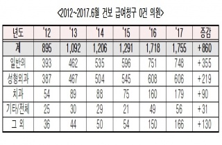 °Ç°º¸Çè ±Þ¿©Ã»±¸°¡ ´Ü ÇѰǵµ ¾øÀÌ ºñ±Þ¿©¸¸ Àü¹®À¸·Î Áø·áÇÏ´Â ÀÇ·á±â°üÀÌ Áö³ 5³â°£ 2¹è°¡·® ´Ã¾î³ °ÍÀ¸·Î ³ªÅ¸³µ´Ù. 26.2017-10-26 11:14:40
