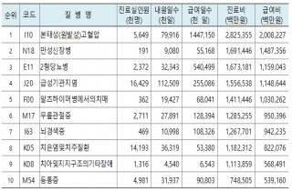 Áö³ÇØ Áø·áºñ Áß Å« ºñÁßÀ» Â÷ÁöÇÏ´Â ÁúȯÀº º»Å¼º°íÇ÷¾Ð ¹× ¸¸¼º½ÅÀ庴, 2Çü ´ç´¢º´À¸·Î Á¶»çµÆ´Ù. ¶Ç ÀÔ¿øÁø·á °Ç¼ö´Â À§Àå 2017-10-17 12:40:03